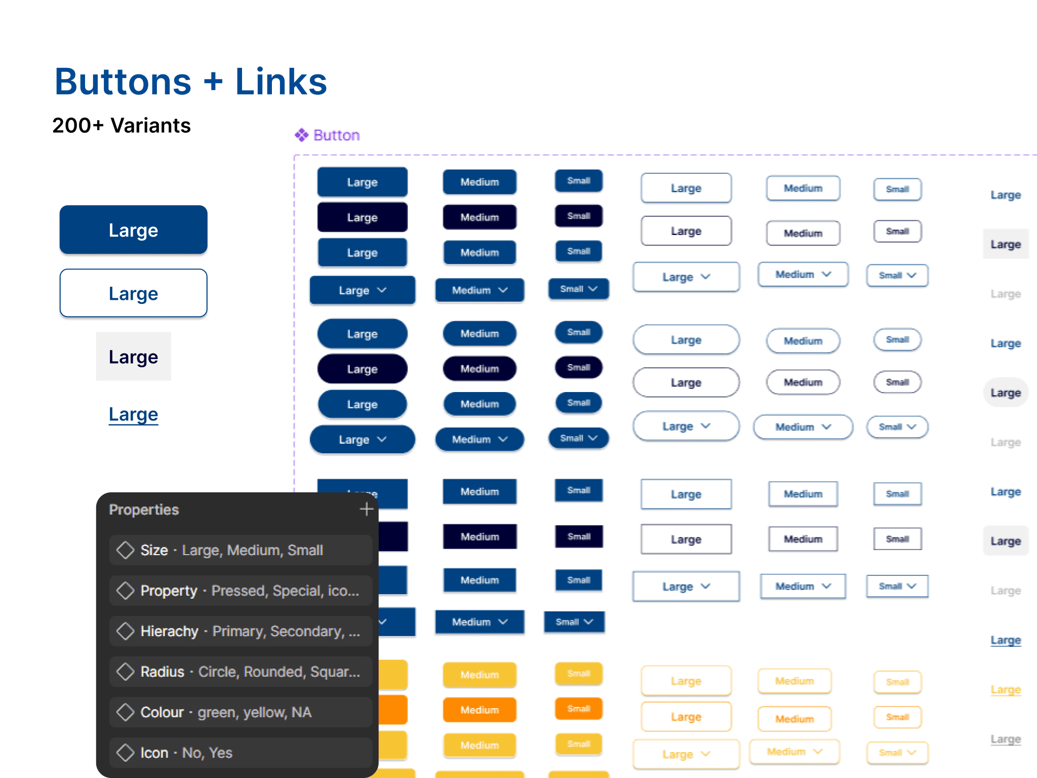 Developed a scalable button and link system with defined hierarchies, sizes, and states to guide user actions clearly and maintain consistency across the interface. Made over 200+ Variants that followed through with rest of the design system.