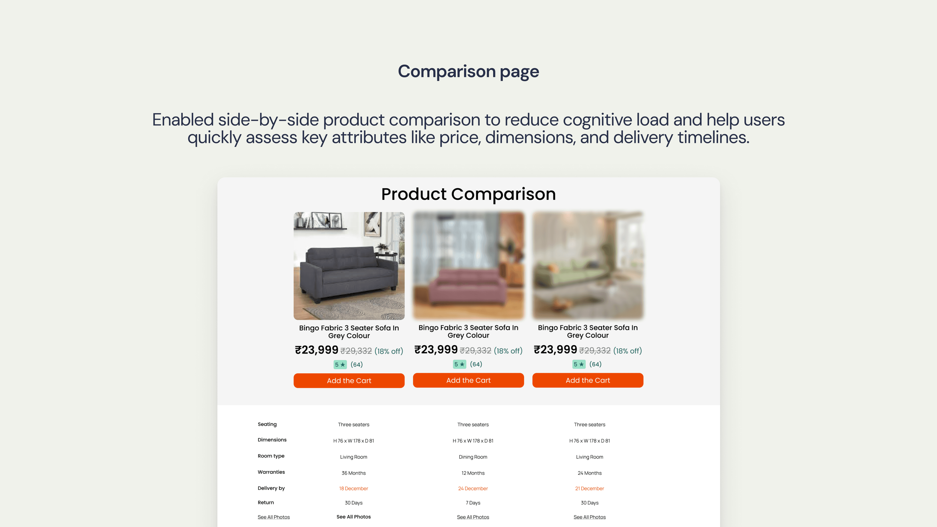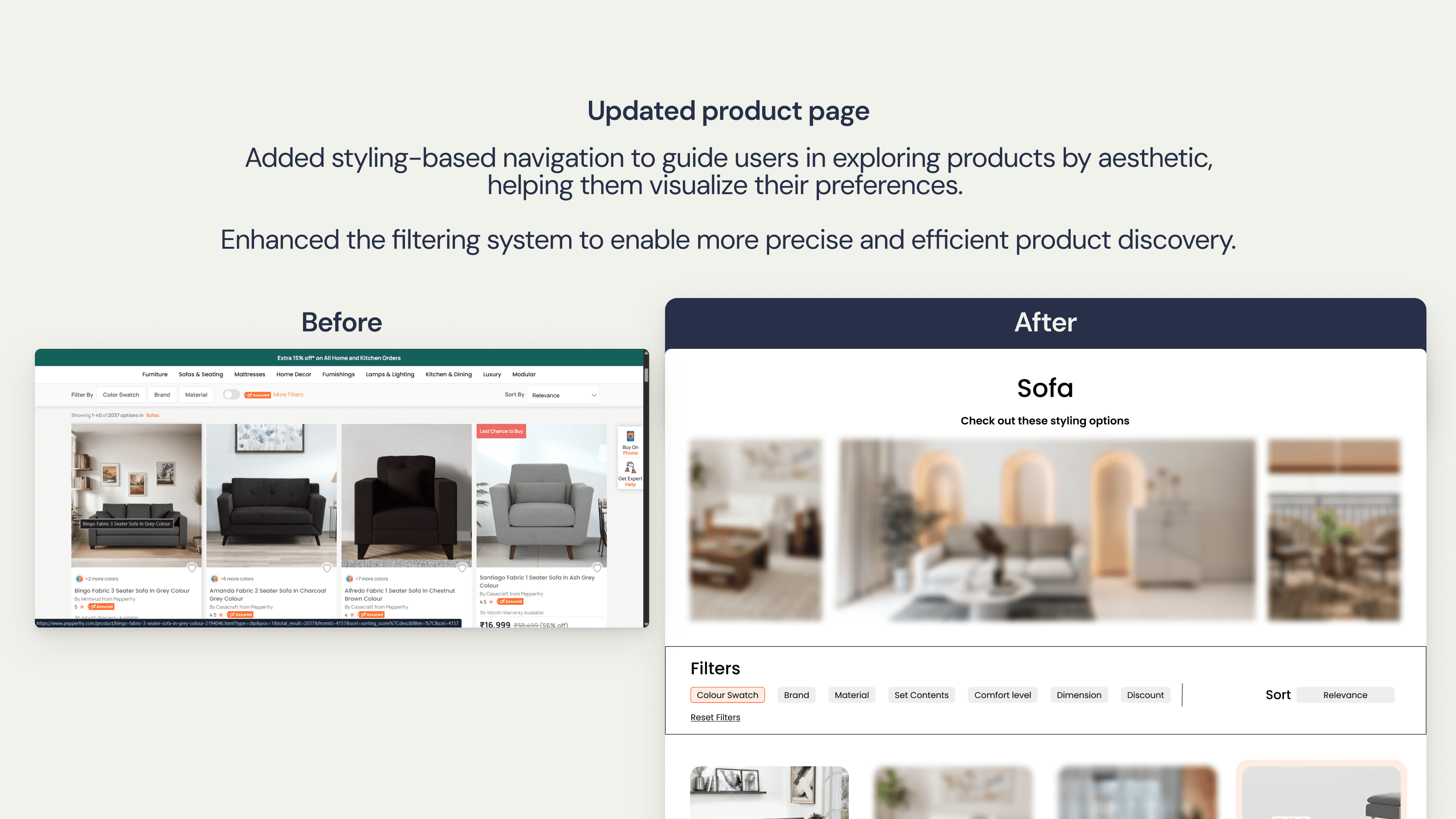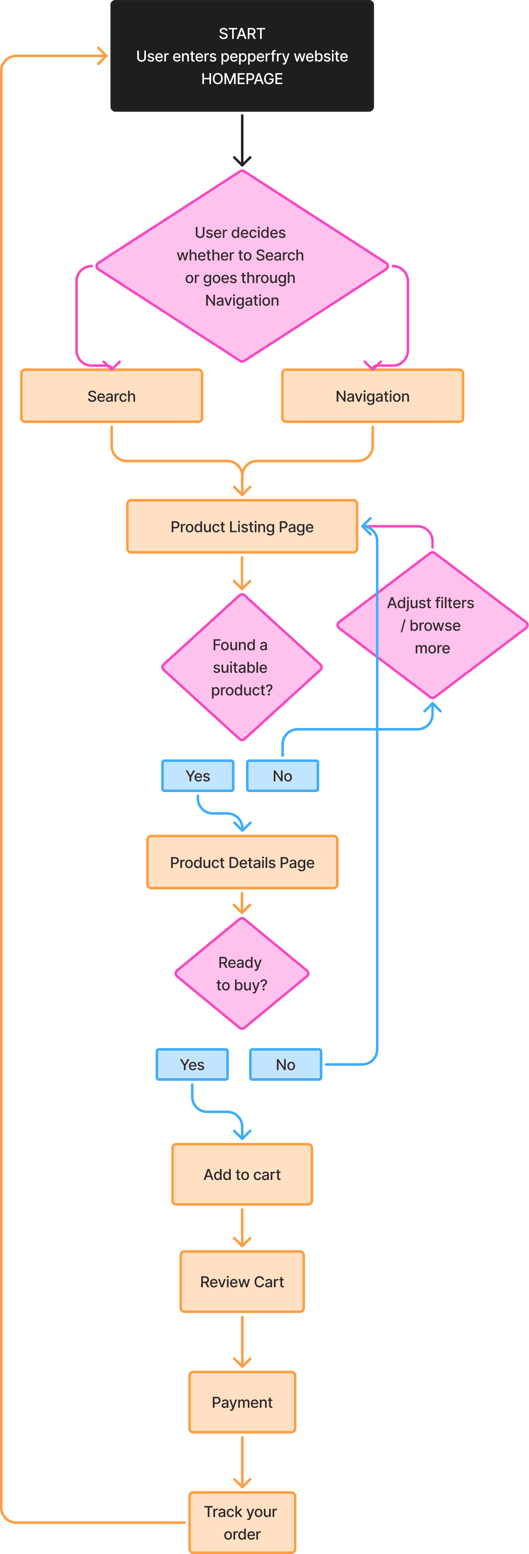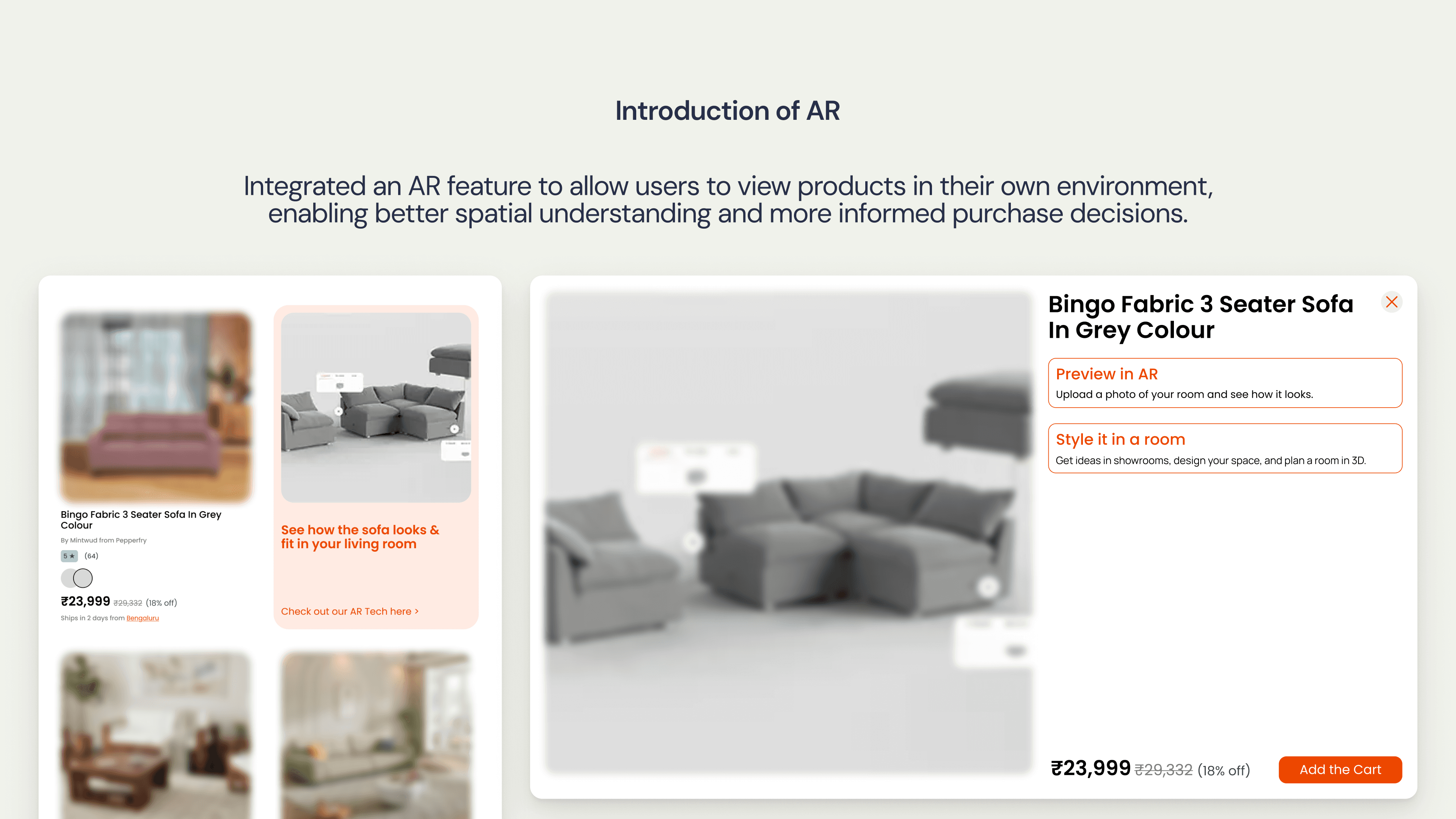 Shopping for furniture online can often feel overwhelming due to excessive choices and complex navigation. This project examines these challenges within Pepperfry, using user insights to design a more streamlined and user-friendly experience.